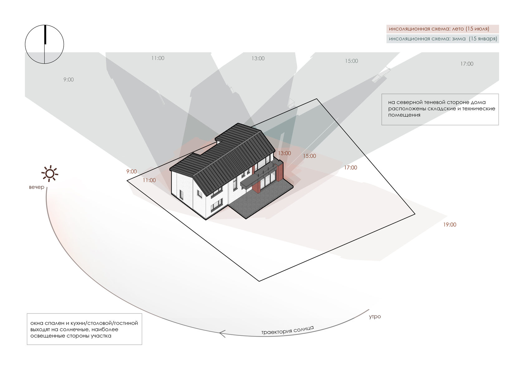 Задача - запроектировать функциональный современный дом для большой семьи, без лишних площадей, но с просторной общей зоной и личным пространством для каждого.