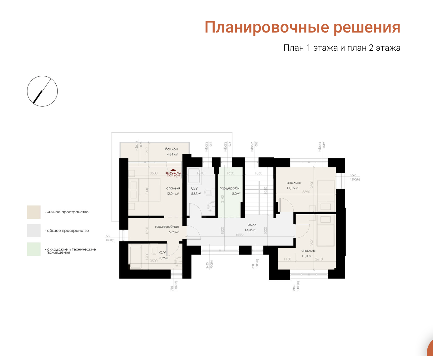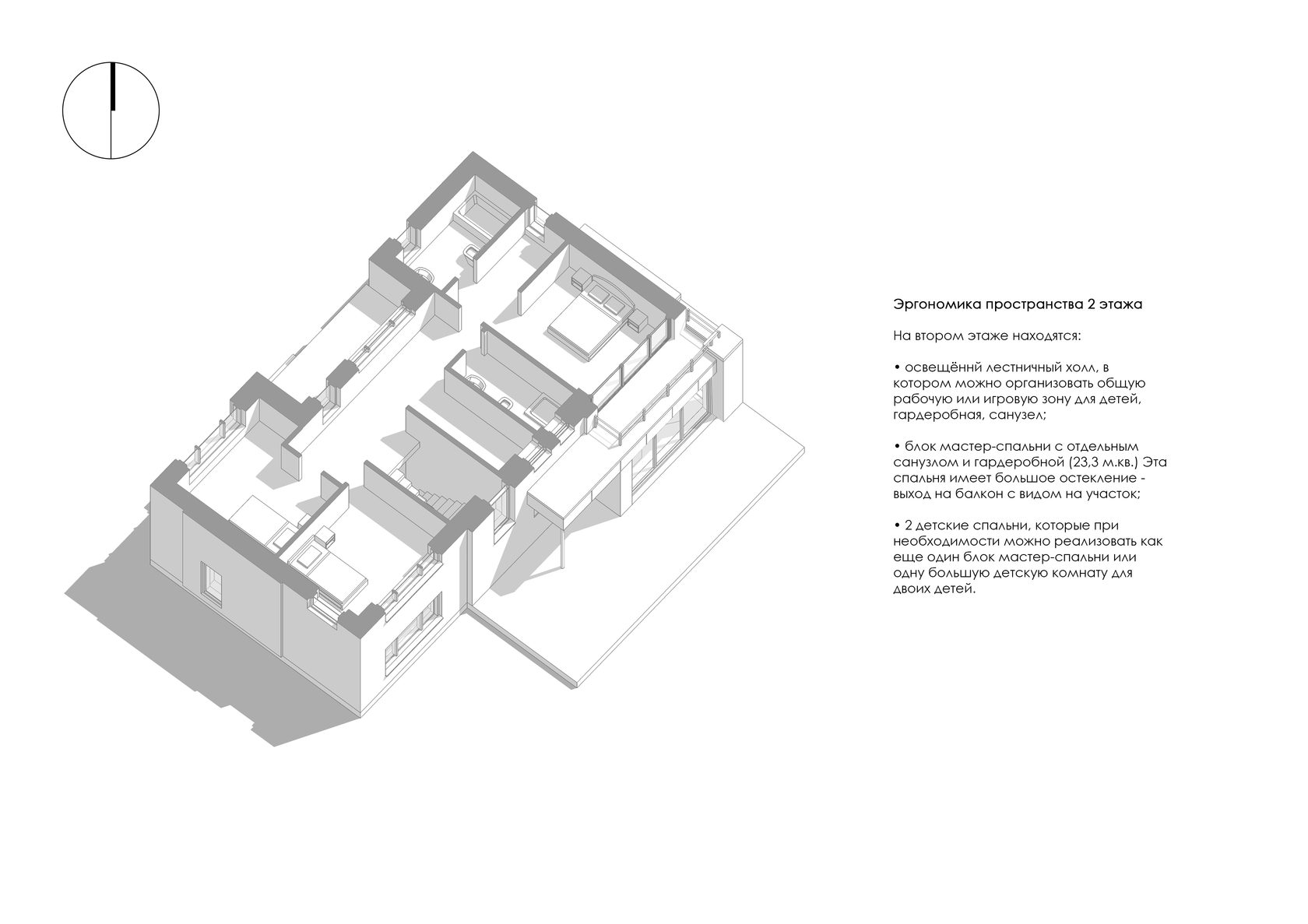 На втором - блок мастер-спальни хозяев с выходом на балкон и две детские.